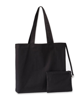 100% Certified recycled cotton, 200gsm. Wide canvas tote with connected cotton zip purse. The purse is detachable with a silver clasp. Concealed zip with self-fabric zip pull. Straps: 60cm x 3cm.Sizing to Fit: One size