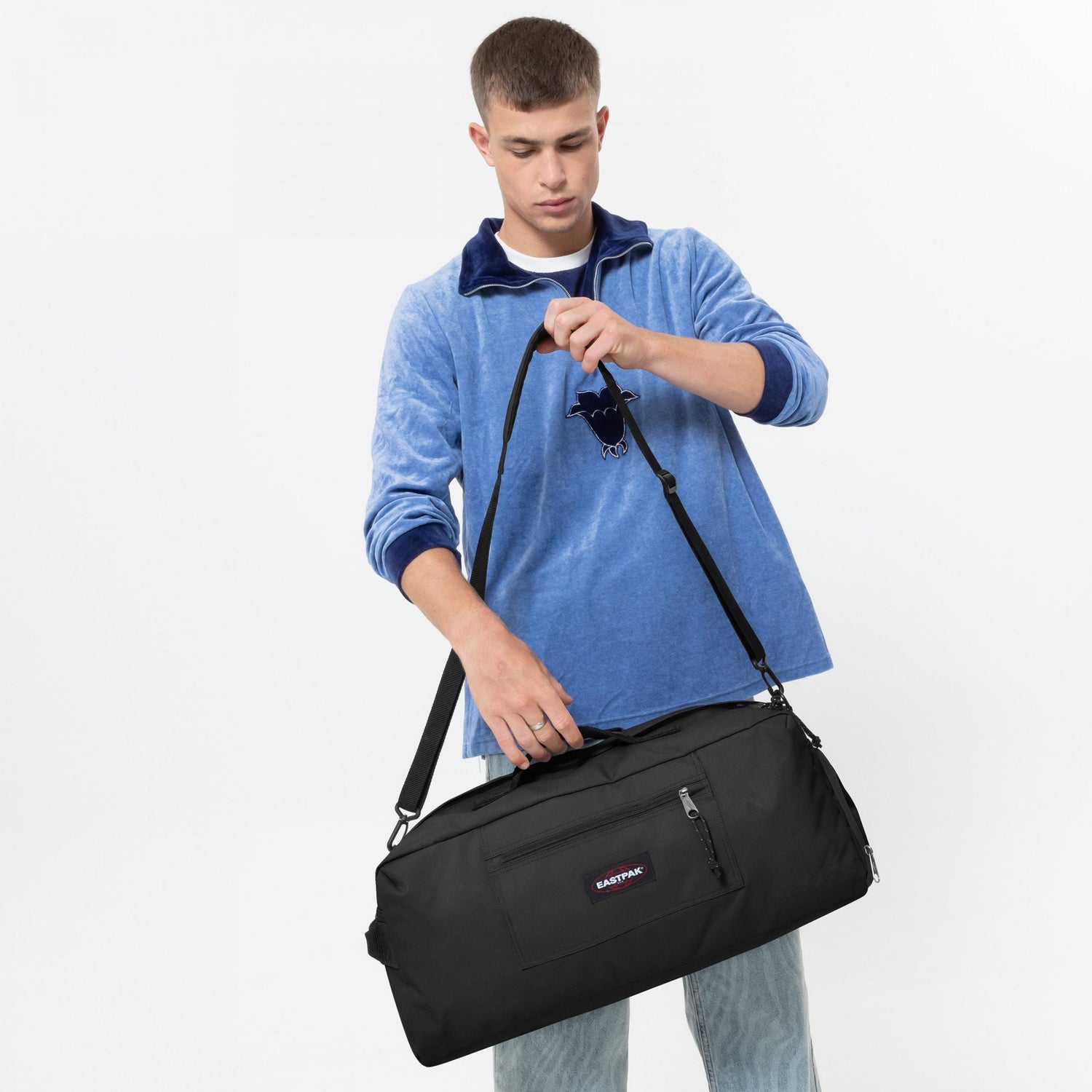 Our medium duffle bag for carrying your sports gear or travel essentials. Store your shoes in the side compartment and adjust the shoulder strap to suit your style. This foldaway design packs away into a pouch.