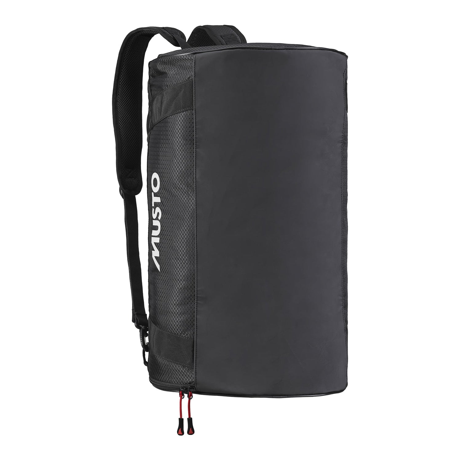 The Essential 50L Duffel Bag is water-resistant and durable with stowable padded backpack straps for easy carrying.