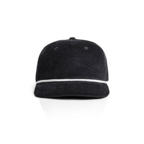 AS Colour Class Cord Rope Cap: A mid-weight, unstructured five-panel cap crafted from 100% cotton with 16-Wale Partridge Cord. Enhanced with a unique matte nylon rope detail at the crown for a modern appeal. With a flat peak, plastic snapback, and tonal under-peak lining. One size fits all, complemented by a tear-out AS Colour label for personalised wear.