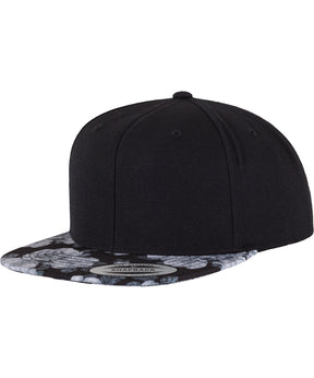 Roses snapback. Classic pro baseball shape with reinforced front and matching snap closure. Subtle rose print on the visor.Product Features