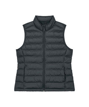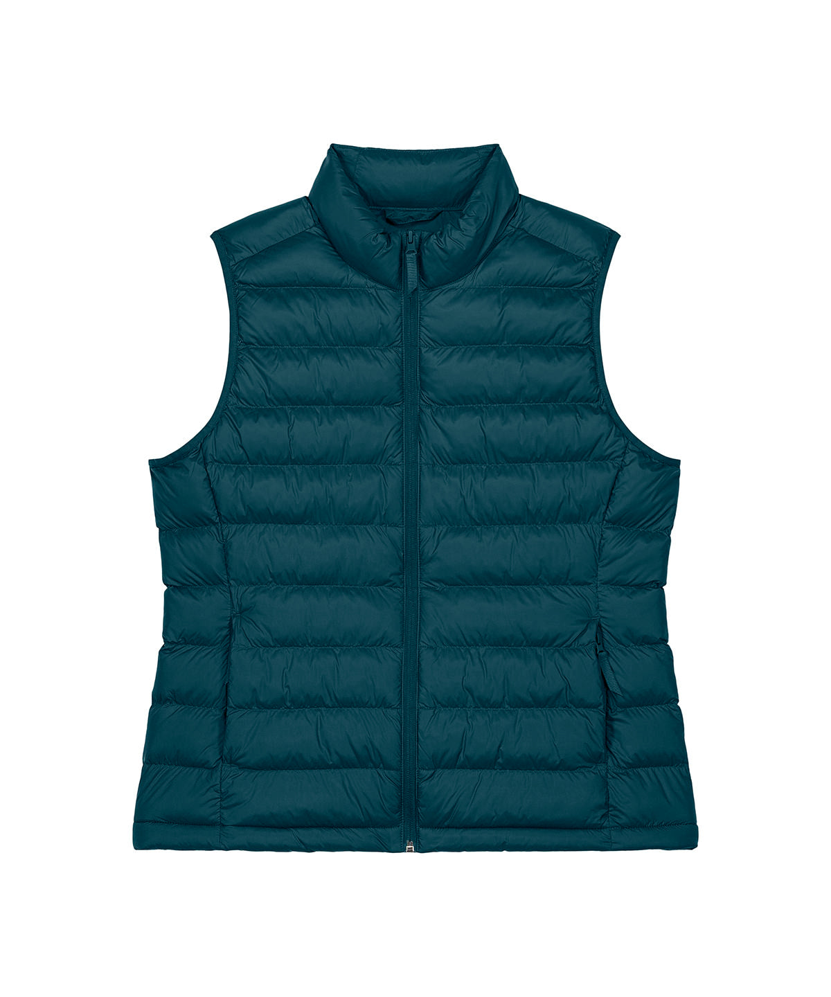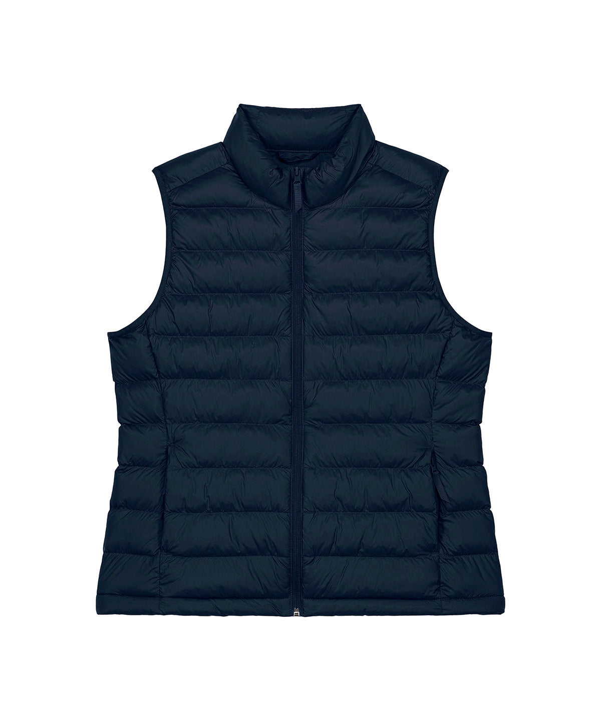 Women’s bodywarmer. Fitted. Sleeveless. High collar. Reverse nylon zip at centre front. Zipped welt pockets with extra grosgrain puller. Elastic tape binding at the armhole. Fully quilted. Side panels for a better shape. Inside seams with binding finish. Bottom hem has an adjustable plastic stopper and elastic cord.Sizing to Fit: XS 8 S 10 M 12 L 14 XL 16 2XL 18 3XL* 20
