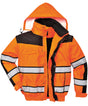 Extremely water resistant PFAS free Texpel™ Splash Eco fabric finish, water beads away from fabric surface. Stand out from the crowd with this classic bomber jacket. It features a detachable fur liner, removable sleeves and detachable collar making it adaptable to all weather conditions. Other features include ID pocket, security sleeve pocket and contrast back panels. Conforms to EN ISO 20471 Class 3, EN 343:2019 Class 3:1 X WP 15000mm EN342 0.344 (M2.K/W), 2, X.Product Features