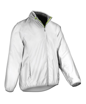 Luxurious highly visible sports jacket with 'ghost' effect 360 degree luminescence for optional roadside awareness. Windproof and showerproof. EN ISO20471:2013 CLASS 2.