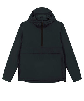 Longer back length with curved hem for protection. Bottom hem and hood with adjustable plastic stopper and elastic cord. Sealed hood visor. Zipped welt pockets. Non-functional flap, front and back. Self-fabric half-moon at back neck. Inside zip opening at bottom hem and inside loop, with snap at armhole providing easy access for chest decoration.Product Features