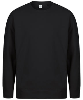 Unisex relaxed-fit sweat. Set-in sleeves, dropped shoulders. Droptail hem – curved high front, low back. Ribbed hem cuffs and crew neck. Single Jersey back neck tape and facing. Tonal topstitching detail. Brand-free, for easy rebranding. Contains recycled cotton and recycled polyester.Product Features