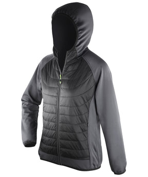 Showerproof, Breathable. Padded body feature; Anatomically curved on women's. Super stretch fabric hood and hems. Invisible zip side pockets. Bound cuff, hem and hood. Reflective detail. Thumbhole cuff. Integral hood. Quick dry. Virtually weightless, ideal layer garment. Thumbholes help top stay in place. Articulated sleeves allows full motion. Attractive padded body using faux down. Ventilated performance, lightweight insulation. Super-Stretch fabric and ergonomic seams allow natural movement.Product Features