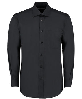 Fused stand-up collar. Double-stitched sleeve and side seams. Single needle stitched yoke, cuffs and armholes. Rounded hem. Chest pocket to left side as worn. 1-button adjustable cuff with no button cuff placket. Spare button. Kustom Kit® woven back neck label.Product Features