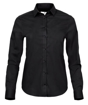 The Women’s stretch luxury shirt is a fitted men’s dress shirt with stretch for total comfort. It features a button-under collar with completely invisible button placement and two-button cuffs.