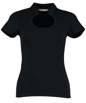 The stretch fabric in this keyhole neck top ensures a perfect fit. Made in a heavy weight cotton jersey it is smart durable and cool to wear, suitable for any business environment.