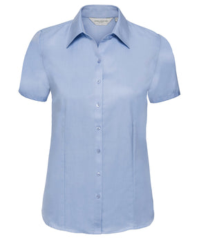 Women's short sleeve herringbone shirt - Light Blue / XS is backordered and will ship as soon as it is back in stock.