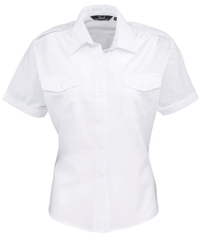 Women's short sleeve easycare pilot shirt. Stiffened collar. 2 chest pockets with button flaps. Combined pen pocket on left breast pocket. Short sleeves. Epaulettes on shoulders.