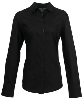 Ladies signature Oxford long sleeve blouse with wrinkle free finish for a smart and professional appearance. Soft collar styling. Rounded bottom hem. Fitted styling with bust and back darts. Pearlised buttons on light blue and white shirt, self colour buttons on remaining. Double buttons on cuff.Product Features