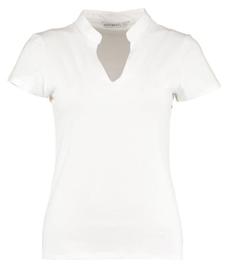 Women's corporate short-sleeved top v-neck mandarin collar (regular fit)