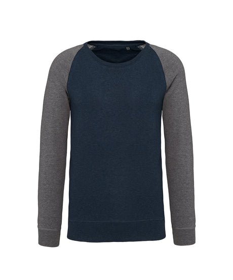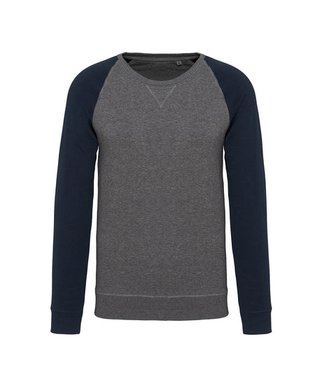 Men's two-tone organic crew neck raglan sleeve sweatshirt