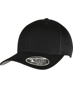 Plain-colored trucker cap with color-matching snapback closure, made from cotton and polyester, one size fits all, Flexfit 110 technology, 8-fold quilted, pre-bent visor.Product Features