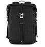 Uprightstyle backpack with rolltop closure. Padded compartment for tablet 9 and laptop 13 plus padded shoulder straps and back panel as well as sternum strap for balance. Flight friendly size with waterrepellent finish and secure caf strap.