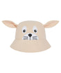 Kids bucket hat with embroidered character facial features. Two colourways in different animal styles. Top-stitched brim detail. Flat top. Elasticated back. Suitable for decoration.
