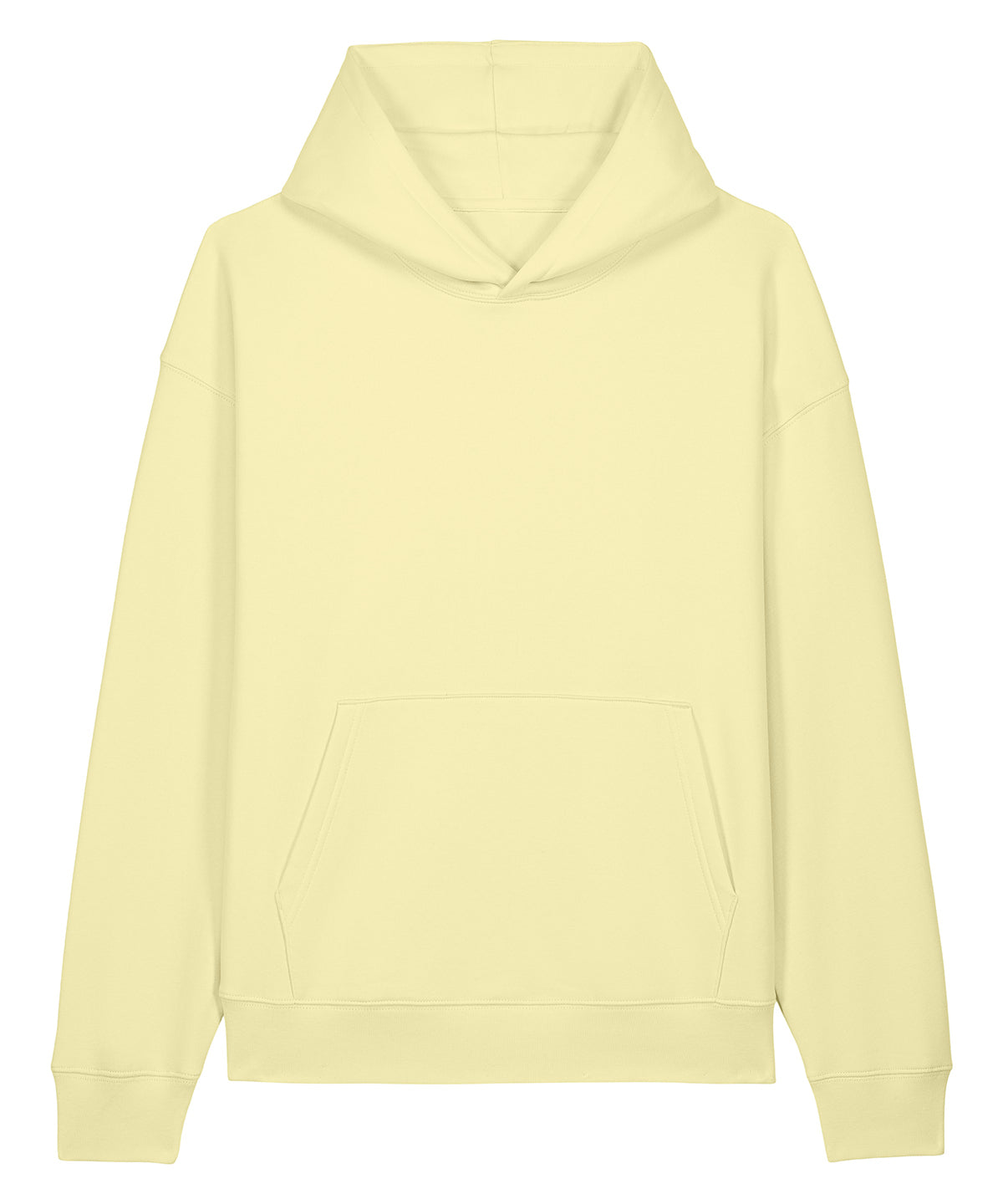A trendy relaxed fit hoodie in 280gsm brushed fabric, without drawcord for a minimalist look – perfect for music merch, customisation and branding.