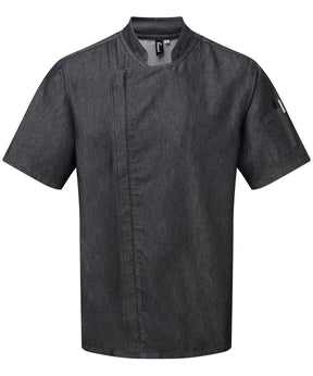 Chef's zip-close short sleeve jacket - Black Denim / XS is backordered and will ship as soon as it is back in stock.