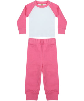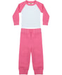 Baseball t-shirt with contrast sleeves and neck binding. Plain hem and cuffs. Twin needle stitching. Contrast plain pants with elasticated waist. Plain rib cuffs. Size tab only.Product Features