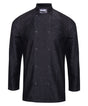 Long sleeve unisex chef's jacket with a cross over fastening at the front. Ten popper stud fasteners for a simple and easy-wearing jacket. Mandarin collar stand with top stitching.Product Features