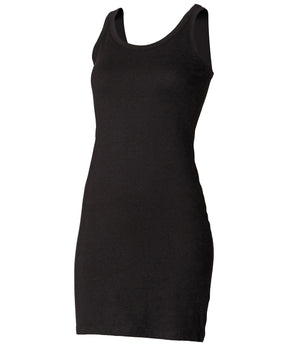 Broader shoulder, modern-look tank very-long length vest in stretch cotton rich fabric for comfort and shape retention. Binding around neck and armholes. Can be worn either as long length tank or a short dress.Product Features