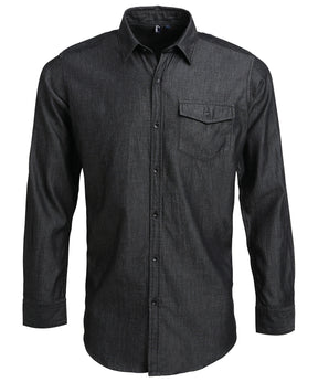 Long sleeve denim shirt with contrast stitch detail with left breast pocket. Buttoned cuff and sleeve guard. Curved hem. Back yoke.Product Features