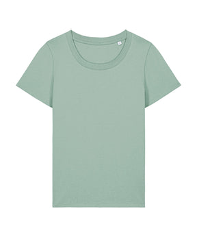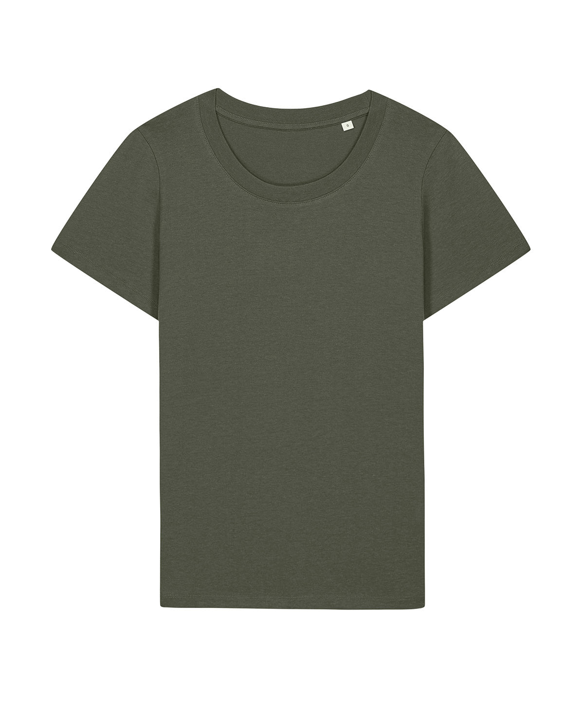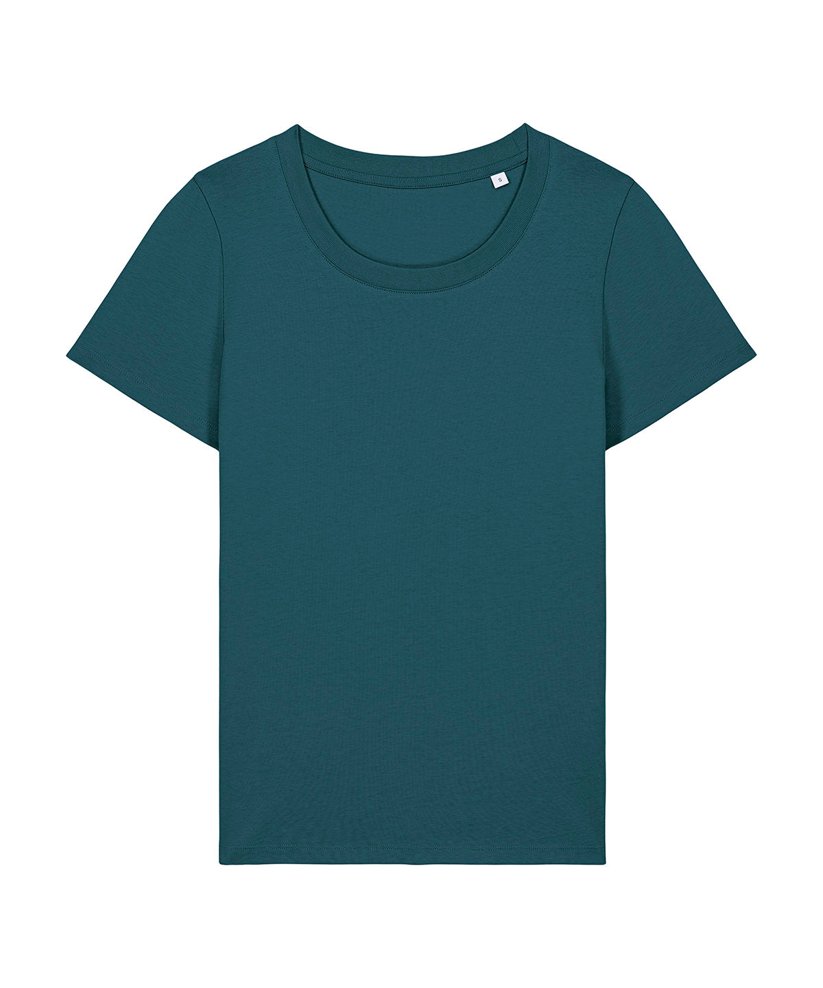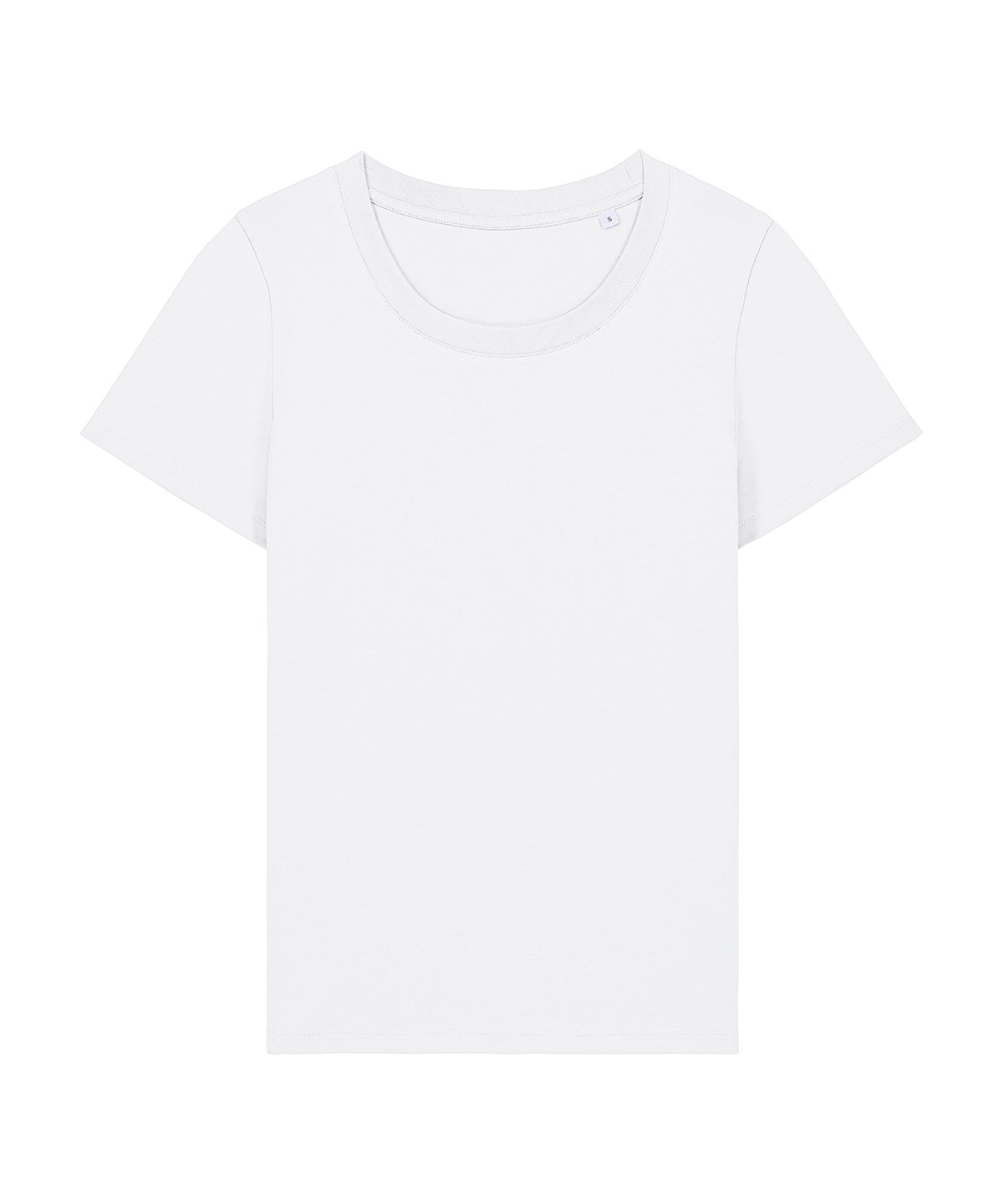 Iconic mid-light women’s t-shirt. Fitted. Set-in sleeve. 1x1 rib at neck collar. Inside back neck tape in self-fabric. Narrow twin-needle topstitch at sleeve cuff and hem.Sizing to Fit: XS 8 S 10 M 12 L 14 XL 16 2XL 18 3XL* 20