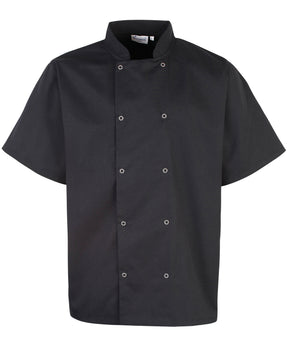 Studded front short sleeve chef's jacket