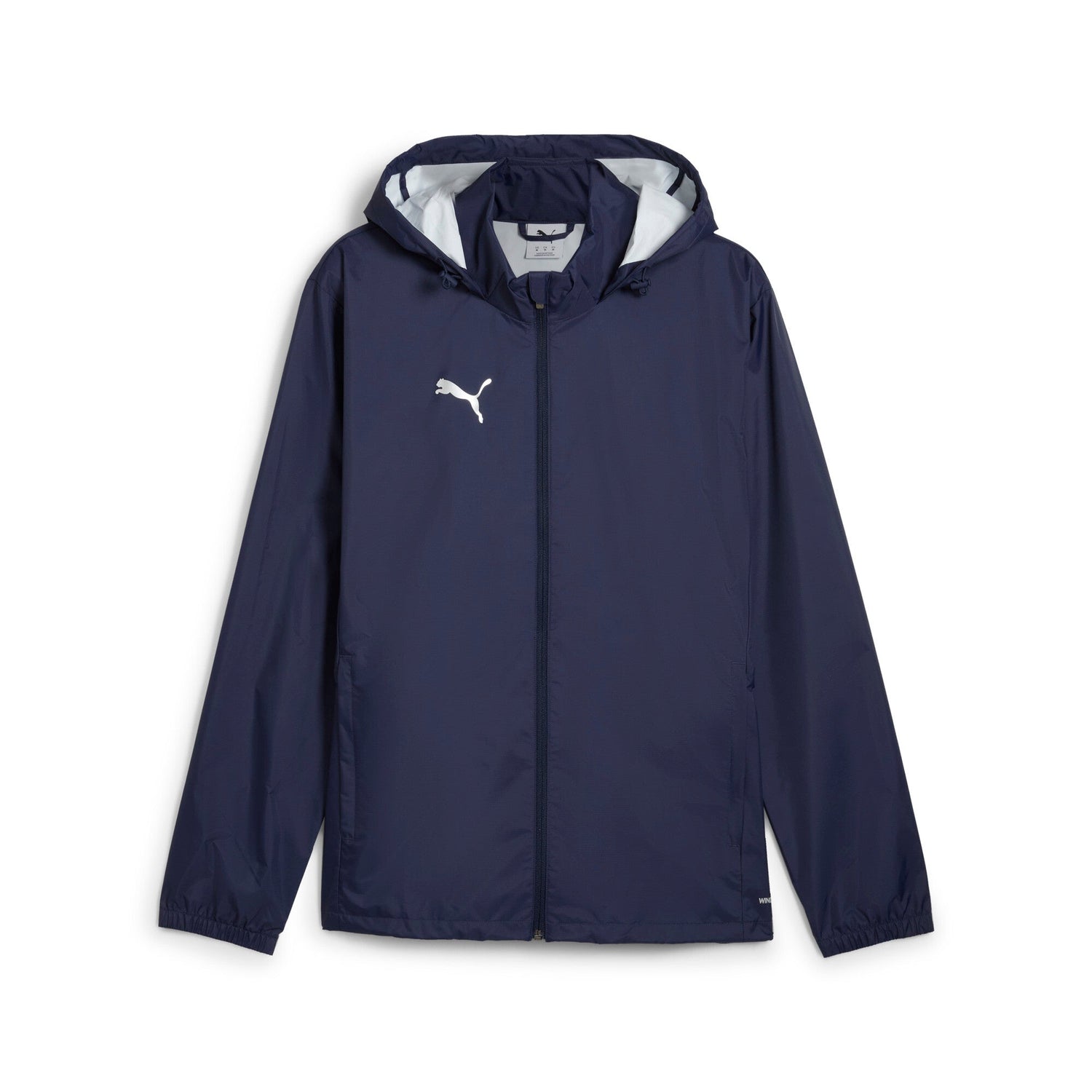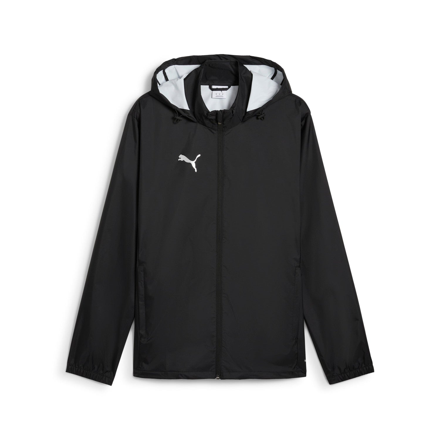 The Puma teamADDITIONS Training All Weather Jacket is your ideal companion for training in any weather. Featuring rainCELL technology, this jacket is designed to keep you dry and comfortable during wet conditions. Made from 100% recycled nylon, it showcases Puma's dedication to sustainability.This regular fit jacket includes a full zip closure, front pockets with zips for secure storage, and a hood for added protection. The PUMA Cat Logo printed on the right chest adds a stylish touch. Perfect for outdoor workouts or everyday wear, the Puma teamADDITIONS Training All Weather Jacket combines functionality with eco-friendly materials.