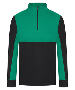 Contrast upper chest and underarm panels. Quarter zip. Side panels. Reverse nylon zips centre front and side pockets. 1x1 ribbed cuff sleeve. Semi-automatic zip pull and slider.Product Features