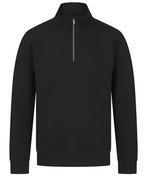 Sweatshirt made from fabric using recycled materials. Regenerated cotton mixed with recycled polyester. Brush back fleece. Set-in sleeves. 1/4 zip metal front zip. Ribbed cuff and hemline. Regular fit. Two in-seam, side-zipped pockets. Side panels. Henbury cut-out label for easy rebranding.Product Features