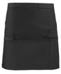 A short waist apron featuring two side zip pockets and one open centre pocket that is ideal for carrying tablet devices. A popular style of apron for waiting-on staff which is made from a durable polycotton fabric to withstand repeated washing.Product Features