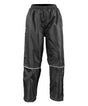 Ripstop waterproof (2000mm). Windproof. Cut for enhanced freedom of movement. Lower leg zip opening for easy access without removing shoes. 2 zip closing side pockets and 1 zip closing back pocket. Adjustable drawcord and elasticated waist. Reflective piping to lower leg incorporating reflective materials. Embroidered Result® sport logo to lower left leg. Fully taped waterproof seams. Concealed access for print and embroidery.Decoration Guidelines:Decorating methods: Embroidery, Direct print & Transfer print. Decorators access point: Open.Product Features