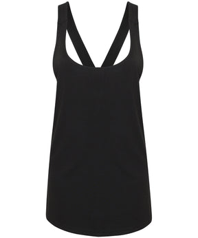 Tear-out label. Strappy back, drop armhole and hem. Flatlock stitching. Scoop neckline.Product Features