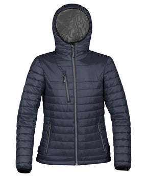 STORMTECH D/W/R durable water-resistant outer shell. Quilted body with ultra soft liner. Centre front vislon zipper with contrast zipper teeth. Elasticized cuffs. Attached hood. Adjustable hem. Set-in sleeves. Brushed tricot hand warmer pockets. Zippered pockets with garages. Chin saver. Internal full-length storm flap. Inside pocket. Internal media port. Embroidery access.Product Features