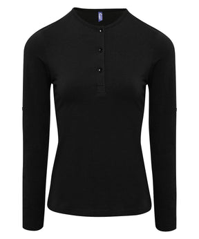 Take on a modern utilitarian trend with this women's roll sleeve tee. A simple but versatile style that can be worn as a long sleeve or rolled back and fastened in place on the upper arm. Soft to touch with an element of stretch in the fabric, this is a trendy piece of workwear that acts as casual alternative to a shirt.