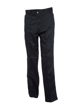 - Specifictions: 65% Polyester 35% Baumwolle,Stoff: 245 GSM/7 Unzen,Flache Vorderseite mit eingenähter Vorfalte,Zwei Fronttaschen,Geknöpfte Gesäßtasche hinten,Doppelte Gürtelschlaufen, verstärkt für zusätzliche Festigkeit,Metallnieten-Knopfverschluss an der Taille,Breite Gürtelschlaufen,Waschbar bei 60 Grad Celsius