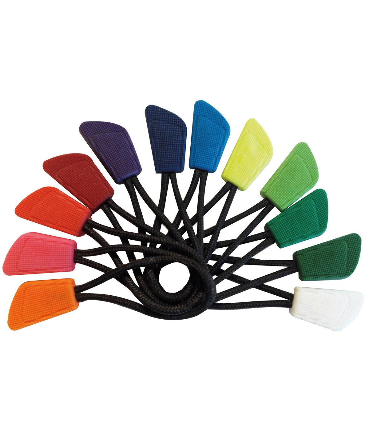 Interchangeable co-ordinates for any Result zip-pull style. Perfect for colour specific solution. Black cord. Coloured toggle. 10 zip pulls per set.Product Features