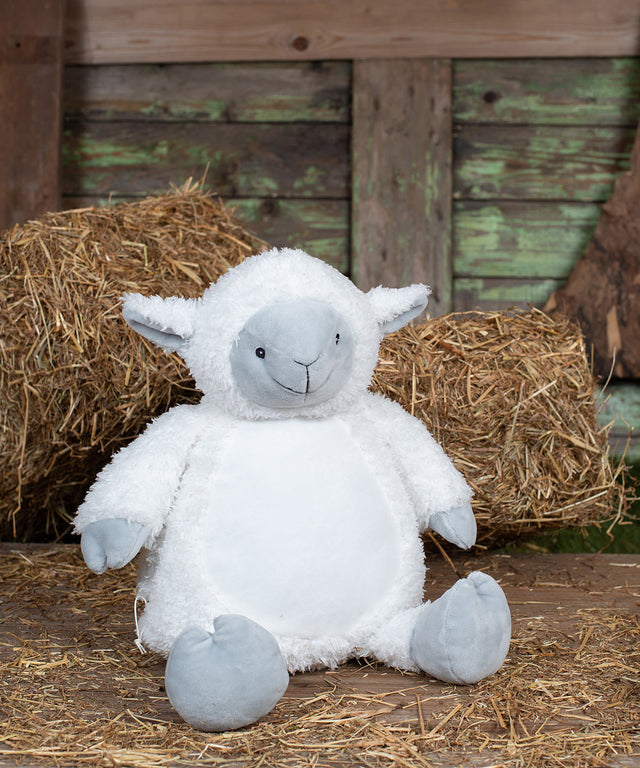 Soft plush Zippie Lamb with contrast face, hands, feet, and inner ear. Sewn eyes and mouth. White panel on tummy, perfect for decoration. Zip access on base for direct access onto the tummy for decoration. Removable inner stuffing. Can be embroidered, vinyl, and sublimation printed. Complies with EN71 European Toy Safety regulations. Remove all hang tags and their fasteners before giving these items to a child. Suitable for all ages.Product Features